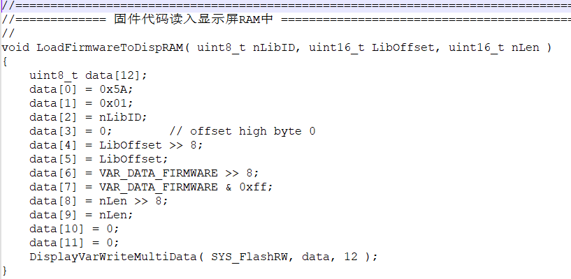 这样用一条指令,就可以把bin文件读取到迪文屏变量空间RAM中,57344个U16类型数据就是112K,所以bin文件最大是112K,比较好操作,虽然每个字库文件是256kbytes,bin文件可以到256kbytes,就需要多次进行读。