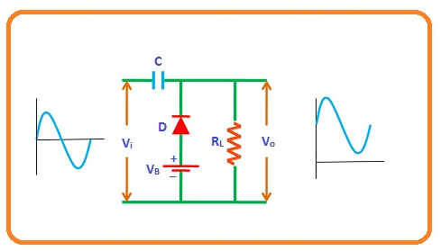 如果电路中具有正偏置,则偏置钳位电路称为具有正偏置的正钳位电路。该电路具有直流电源或直流电源、负载电阻、电容和二极管。