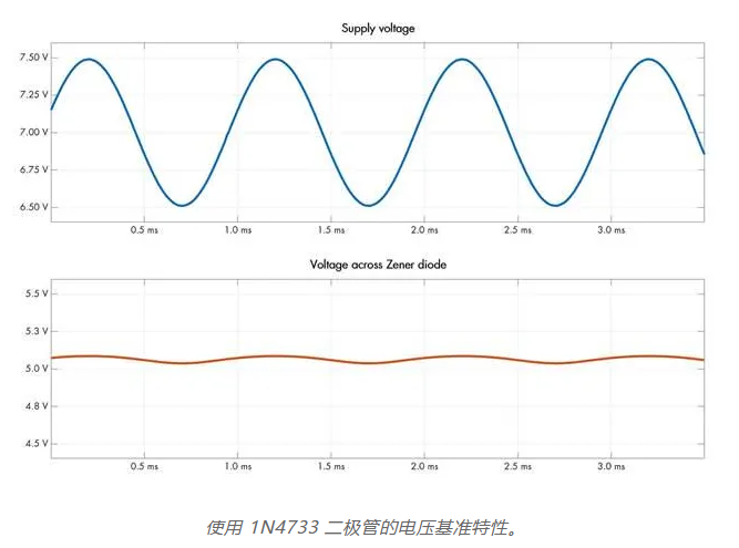 本文前面显示的 V-I 图告诉我们,一旦反向击穿开始,施加电压的微小变化就可以在流过的电流中产生相对较大的摆幅。我们也可以从另一个角度来看:如果通过二极管的电流以某种方式受到限制,那么该电流的波动对二极管两端产生的电压影响相对较小。
