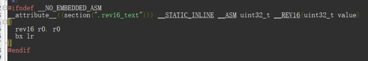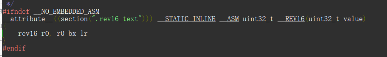 STM32的库部分存在汇编语言,格式化后可能会导致编译错误。例如对cmsis_armcc.h进行格式化时 会导致汇编语句错误。