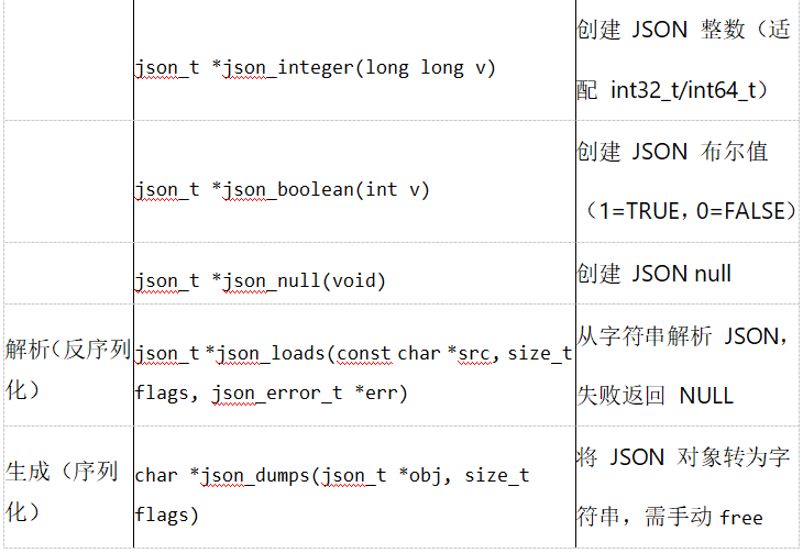 1. 轻量级:无依赖(仅标准 C 库),代码量小,RAM/ROM 占用低,适配嵌入式资源受限场景;